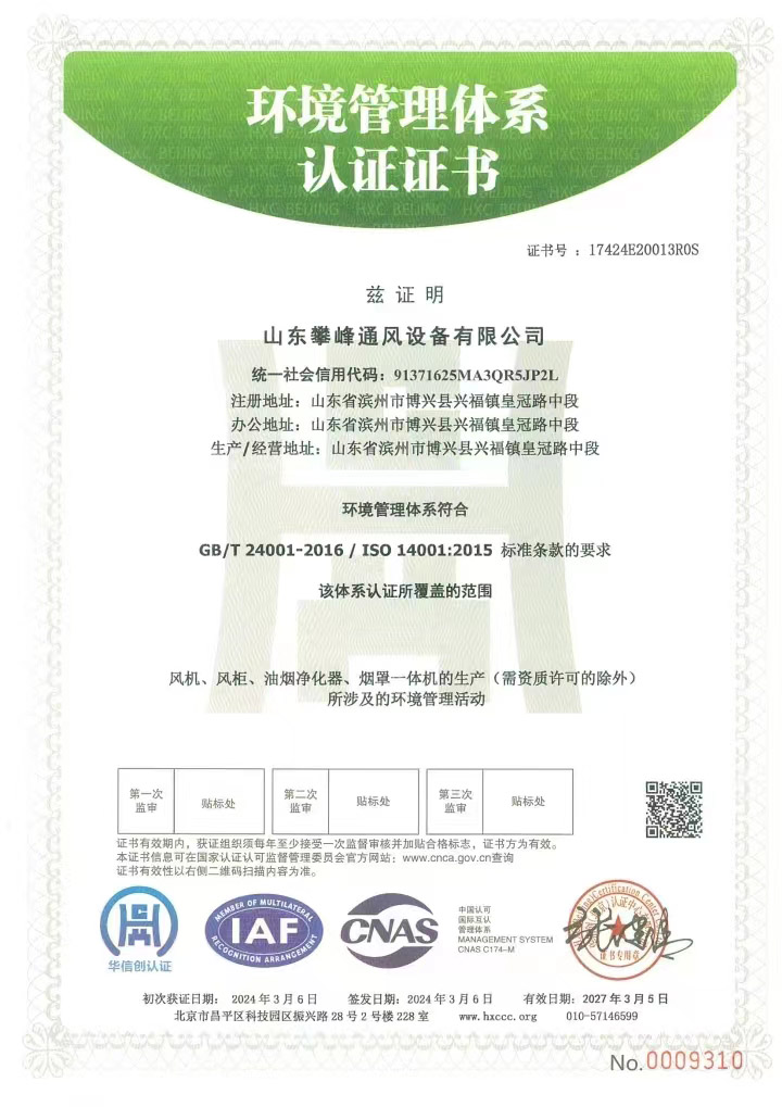 • 環(huán)境管理體系認證證書