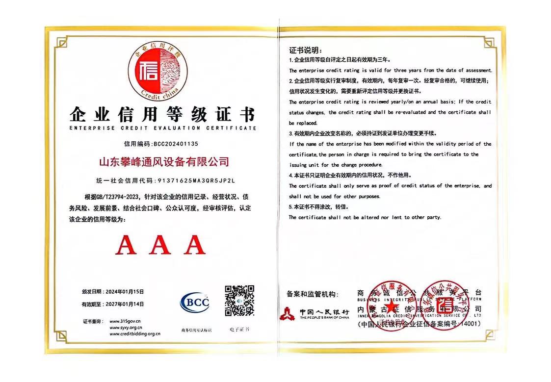 • 企業(yè)信用等級證書